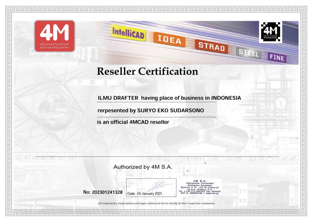 Selamat datang di 4MCAD.id! Kami adalah reseller resmi dari software 4MCAD, sebuah software CAD yang dirancang untuk memberikan solusi terbaik bagi para profesional di bidang arsitektur, teknik, dan desain yang diproduksi oleh perusahaan 4M yang berpusat di Yunani.