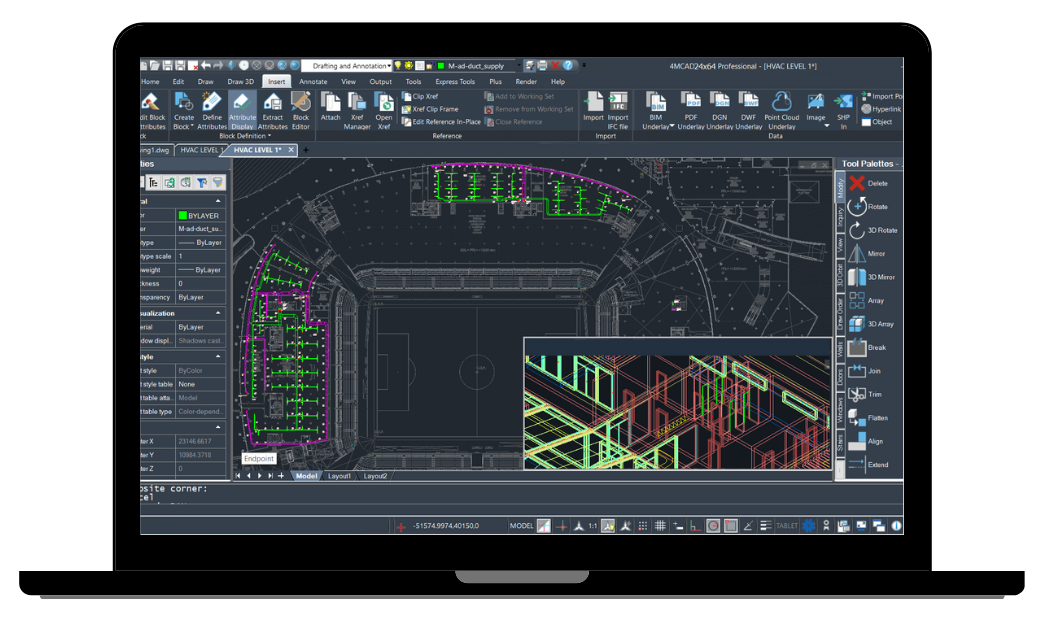4MCAD menawarkan kompatibilitas DWG penuh, antarmuka yang mirip dengan AutoCAD, dan kinerja yang optimal dengan biaya yang lebih terjangkau.